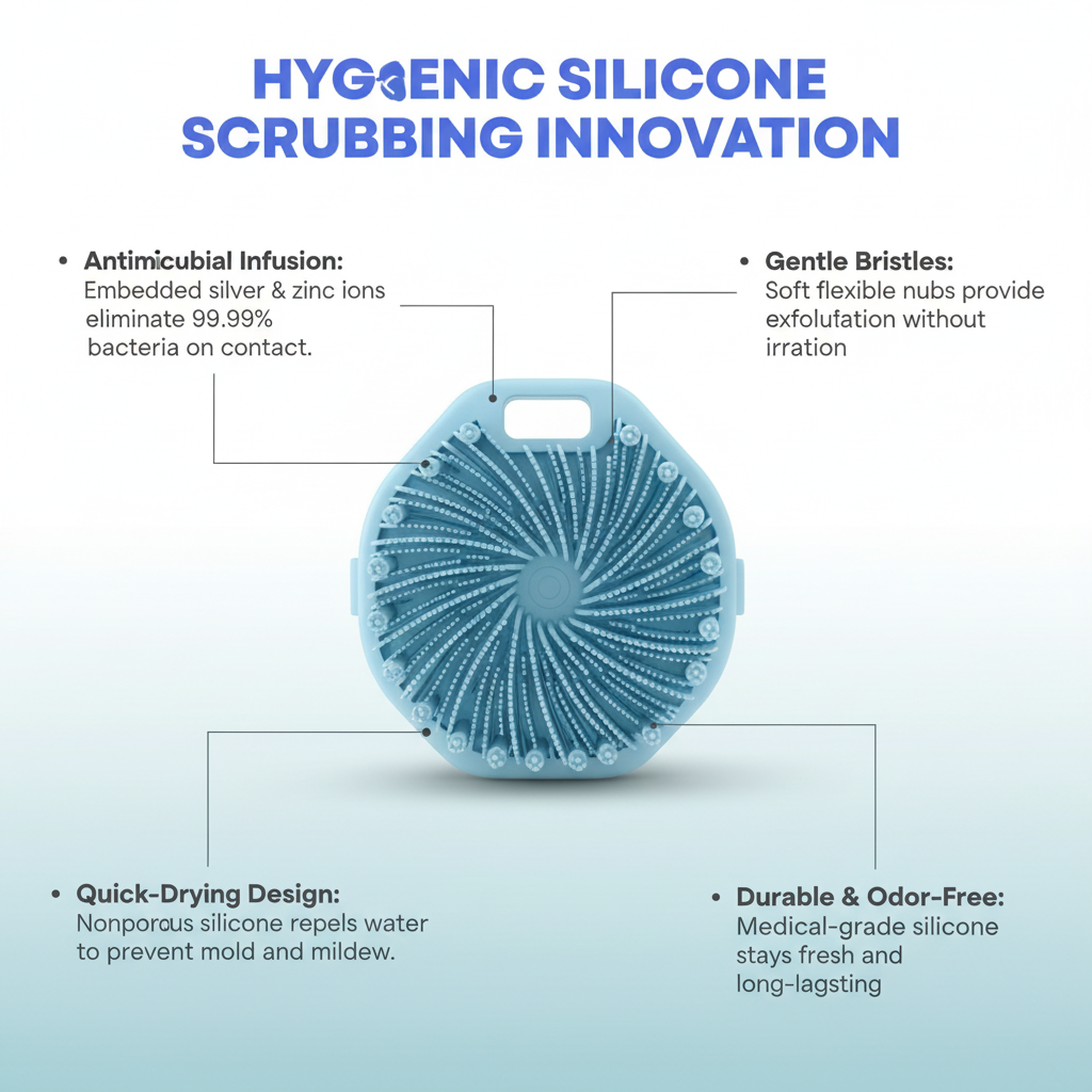 Featuring antimicrobial silver and zinc ions, it's your go-to scrubber for skin and pet care. Nonporous silicone dries quickly, making it perfect for post-workout and bath routines.